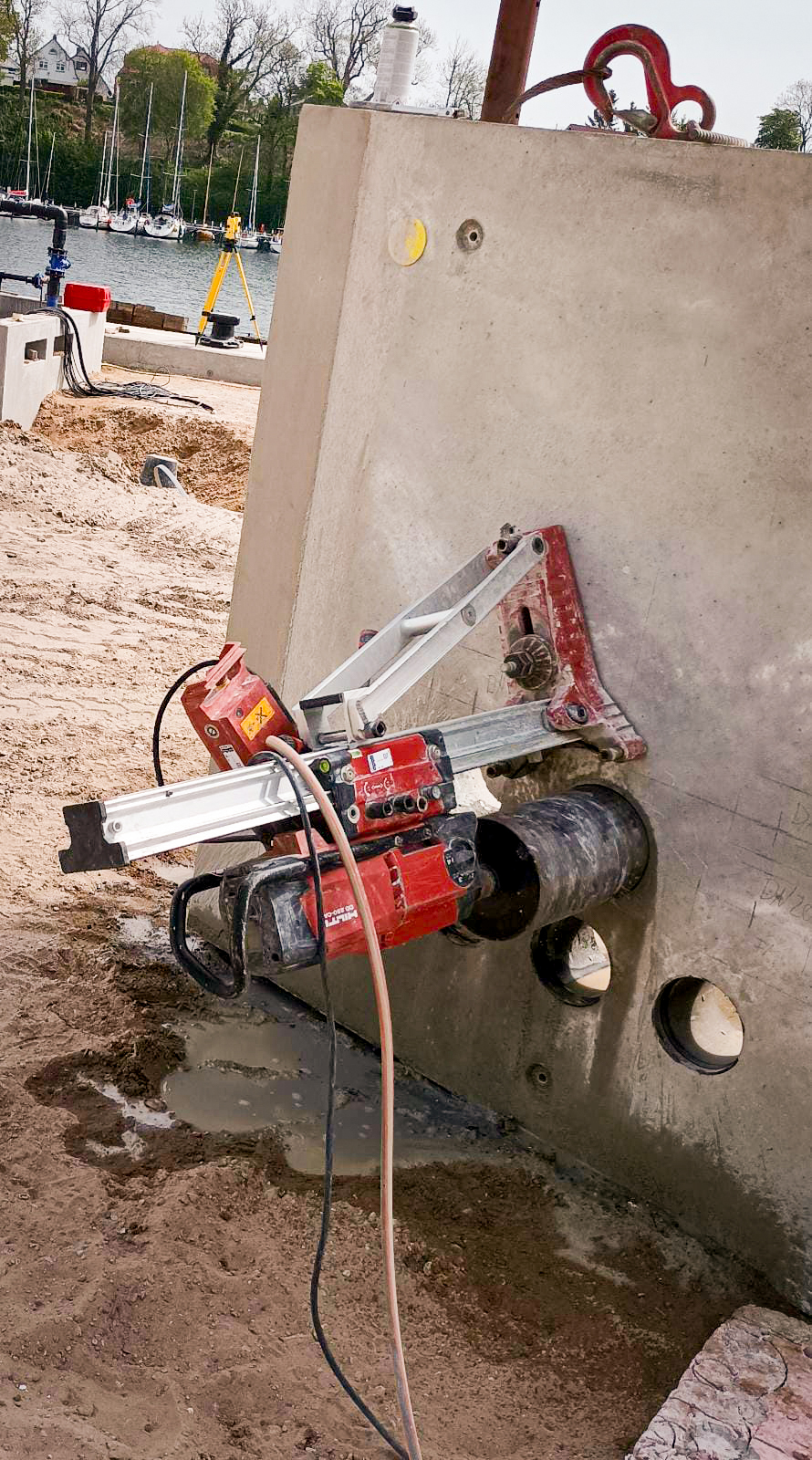 Im öffentlichen Bau sind Kernbohrungen oft Teil des Fundamentalen: Sie dienen der Materialprüfung, dem Einbau von Leitungen oder als Teil der Statik. Gerade bei Brücken, Schleusen oder Straßenbauprojekten sind Präzision und Zuverlässigkeit oberstes Gebot.